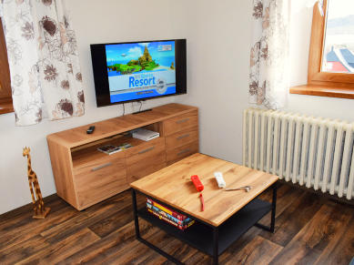 Obývací pokoj - LCD SMAR TV, rozkládací pohovka (160 x 200cm) naníž se pohodlně vyspí dvě další osoby.