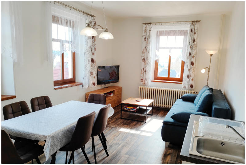 apartmánu s celkovou kapacitou 6+2 lůžka.